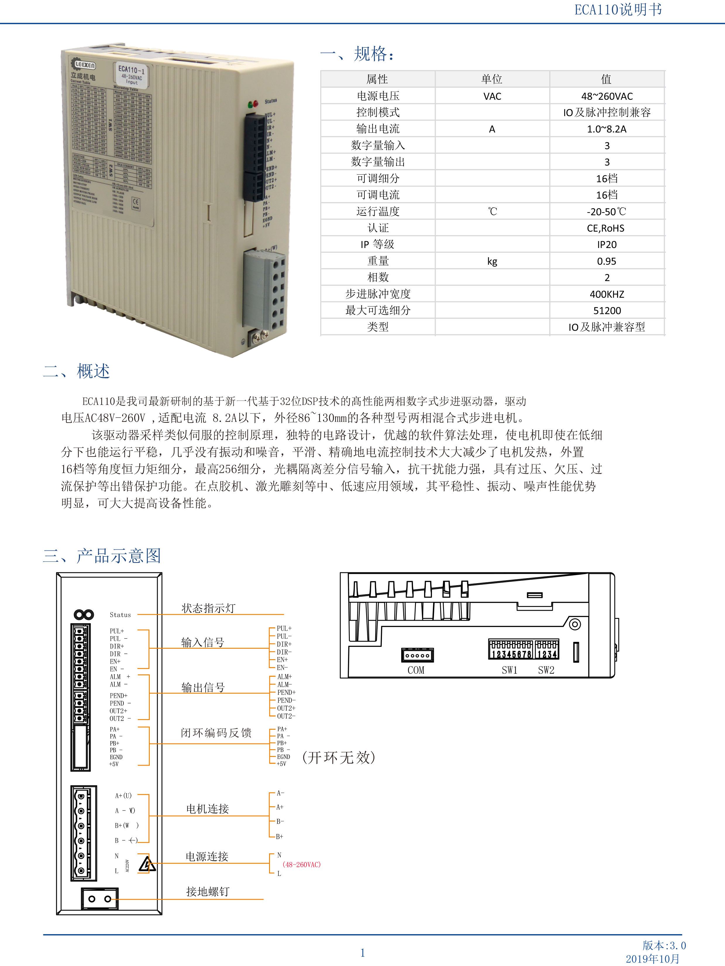 立成機(jī)電ECA110-1系列直流高壓48V-260V交流步進(jìn)電機(jī)驅(qū)動(dòng)