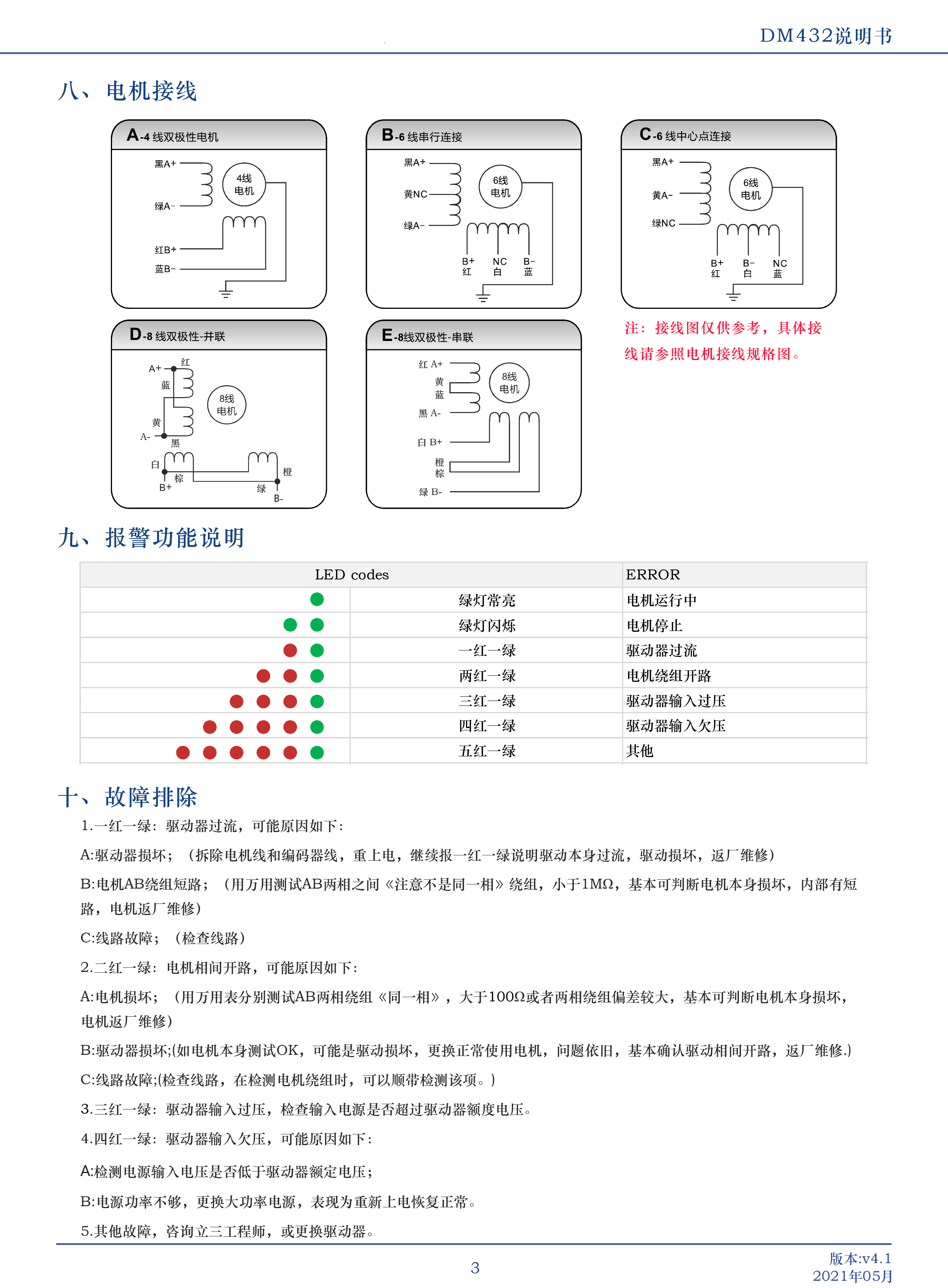 DM432是立成公司潛心研制的基于新一代基于32位DSP技術(shù)的高性能兩相數(shù)字式步進(jìn)驅(qū)動(dòng)器,驅(qū)動(dòng)電壓DC8V-36V適配電流 32A以下,外徑42以下各種號(hào)兩相混合式步進(jìn)電機(jī)該驅(qū)動(dòng)器采樣類似伺服的控制原理,獨(dú)特的電路設(shè)計(jì),優(yōu)越的軟件算法處理,使電機(jī)即使在低細(xì)分下也能運(yùn)行平穩(wěn),幾乎沒有振動(dòng)和噪音,平滑、精確地電流控制技術(shù)大大減少了電機(jī)發(fā)熱,外置16檔等角度恒力矩細(xì)分,最高128細(xì)分,光耦隔離差分信號(hào)輸入,抗干擾能力強(qiáng),具有過壓、欠壓、過流保護(hù)等出錯(cuò)保護(hù)功能。在點(diǎn)膠機(jī)、激光雕刻等中、低速應(yīng)用領(lǐng)域,其平穩(wěn)性、振動(dòng)、噪聲性能優(yōu)勢明顯,可大大提高設(shè)備性能。